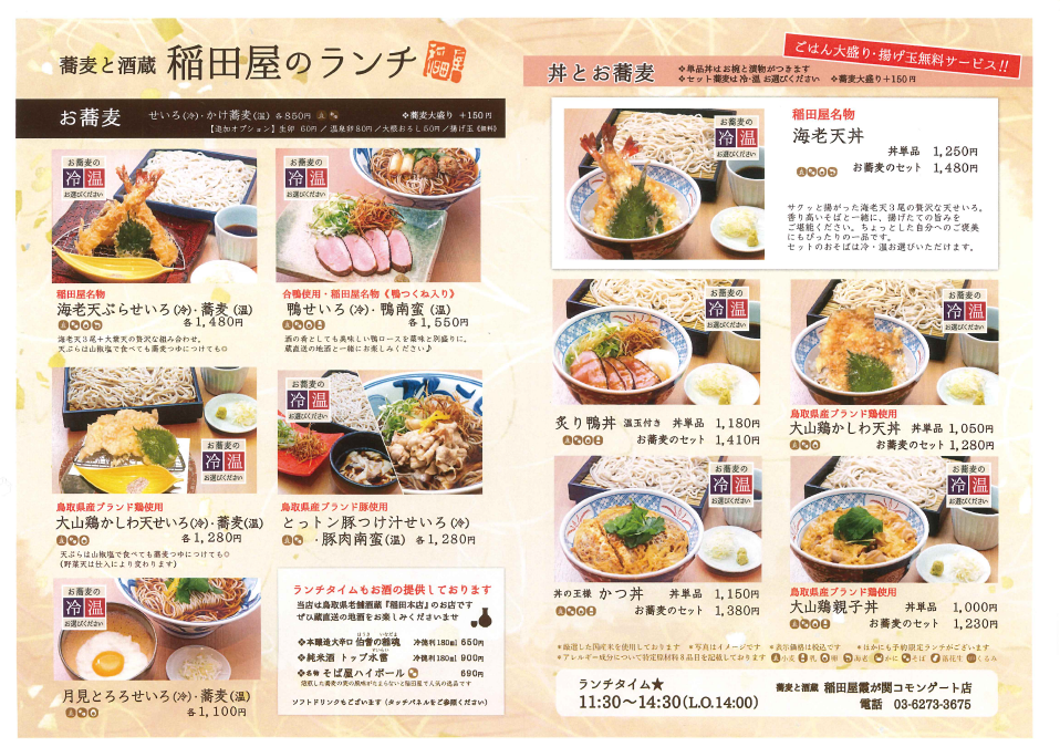 霞が関コモンゲート 西館2階「蕎麦と酒蔵 稲田屋」では